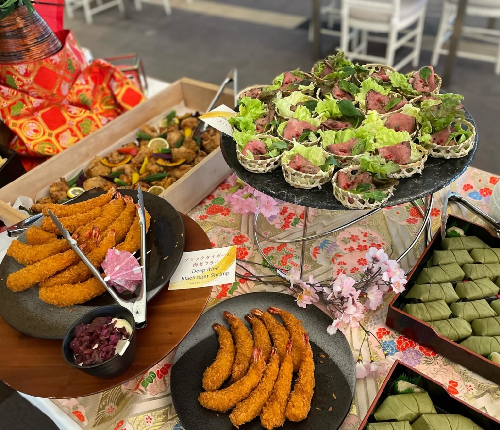 桜が満開の景色に囲まれて、ゆっくりと日本食を楽しまれていました!