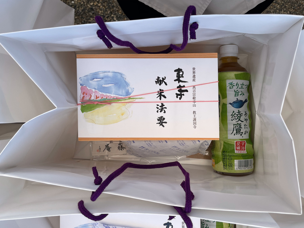 世界遺産 真言宗総本山 教王護国寺 東寺様の高祖弘法大師献米法要 報恩謝徳会用のお弁当とオードブルのお届け