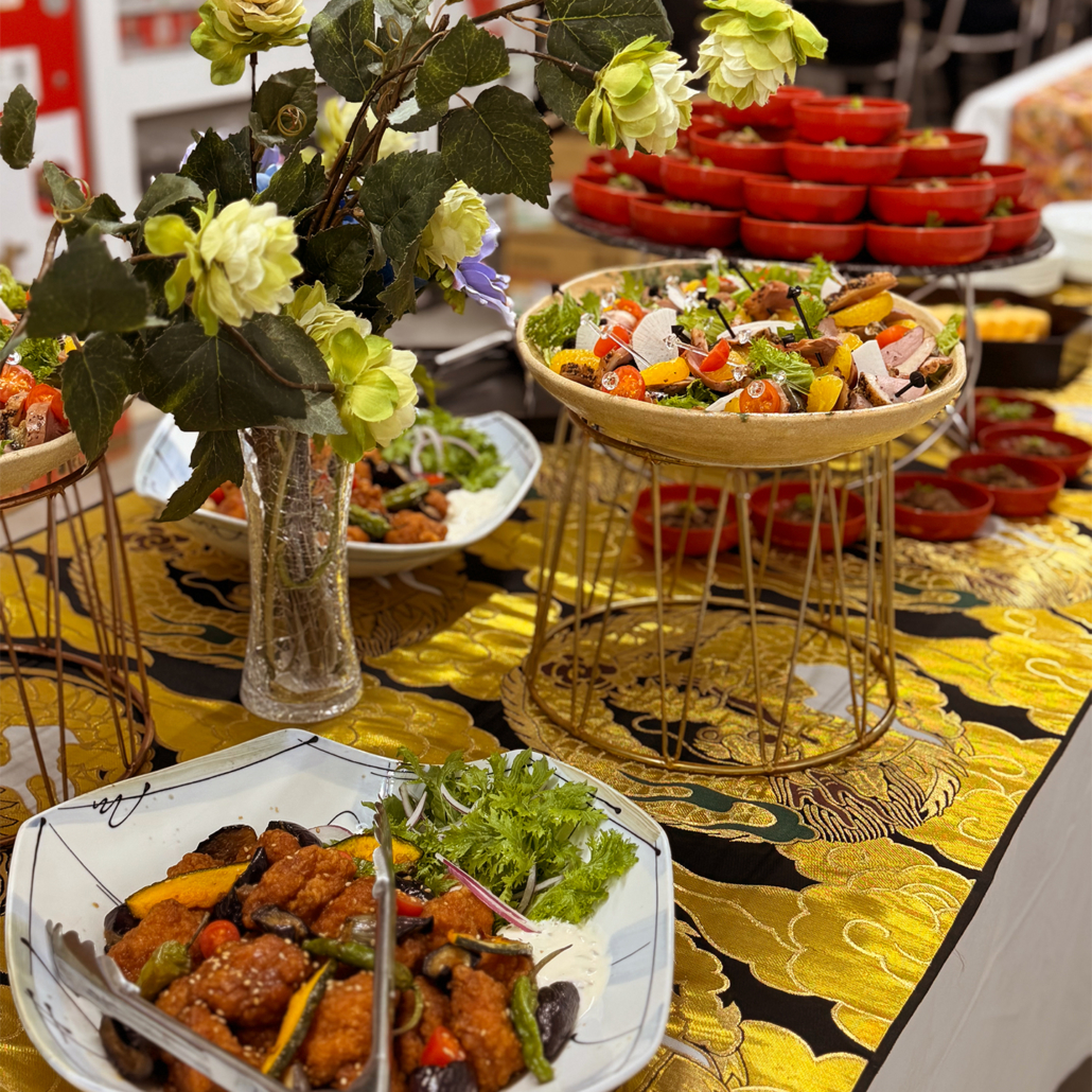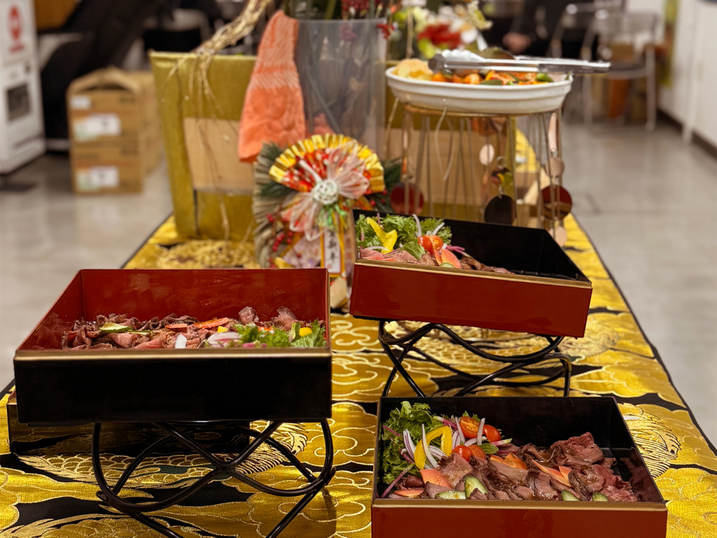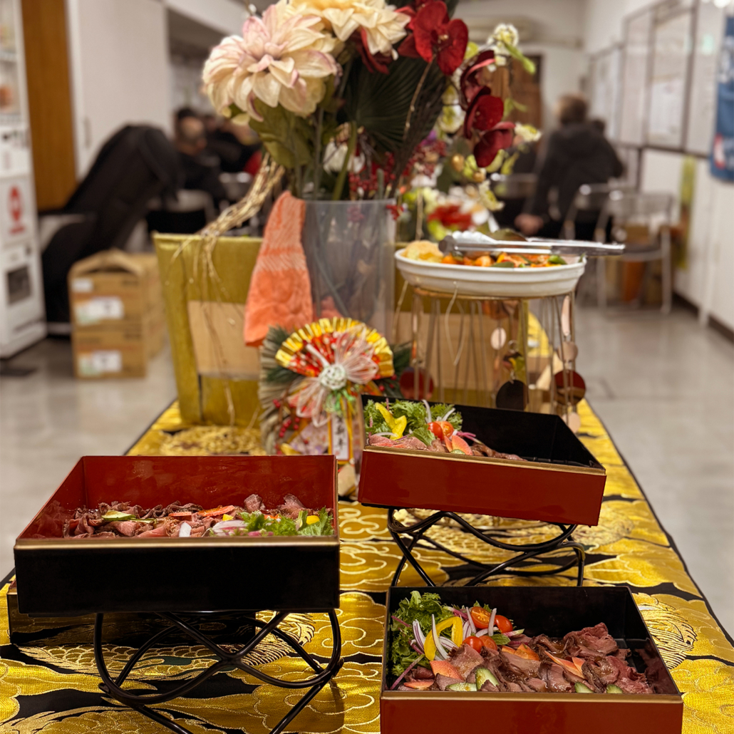 タクシー会社様へ旗開き用パーティー料理をお届け 2025年1月14日/カテゴリ: これまでの事例集 /作成者: white-familyタクシー会社ご担当者様からのご依頼により、旗開き用のパーティー料理をお届けさせていただきました。 相談内容●旗開きにふさわしいパーティー料理を届けて欲しい。 ●会場が華やかになるようにテーブルコーディネートもお願いしたい。 ●お持ち帰り出来るお弁当も別途用意して欲しい。 配達エリア京都市山科区 参加人数約60名 ご提案させて頂いたケータリングメニュー 丹波牛すき焼き、海老のチリソース煮込み、ローストビーフ、寿司、カツサンド、出汁巻き、天ぷら盛り合わせ、油淋鶏、他多数 給仕メニュー:京のもち豚しゃぶしゃぶ お土産にプリン(プレーン、チーズ)をご用意させて頂きました。 ご下命頂き、誠にありがとうございました。 ~心に寄り添い “想い”をカタチに~ https://www.wf9999.com/wp-content/uploads/blog-250114-00.jpg 1080 1440 white-family https://www.wf9999.com/wp-content/uploads/logo-1.png white-family2025-01-14 19:10:172025-02-10 16:49:53タクシー会社様へ旗開き用パーティー料理をお届け