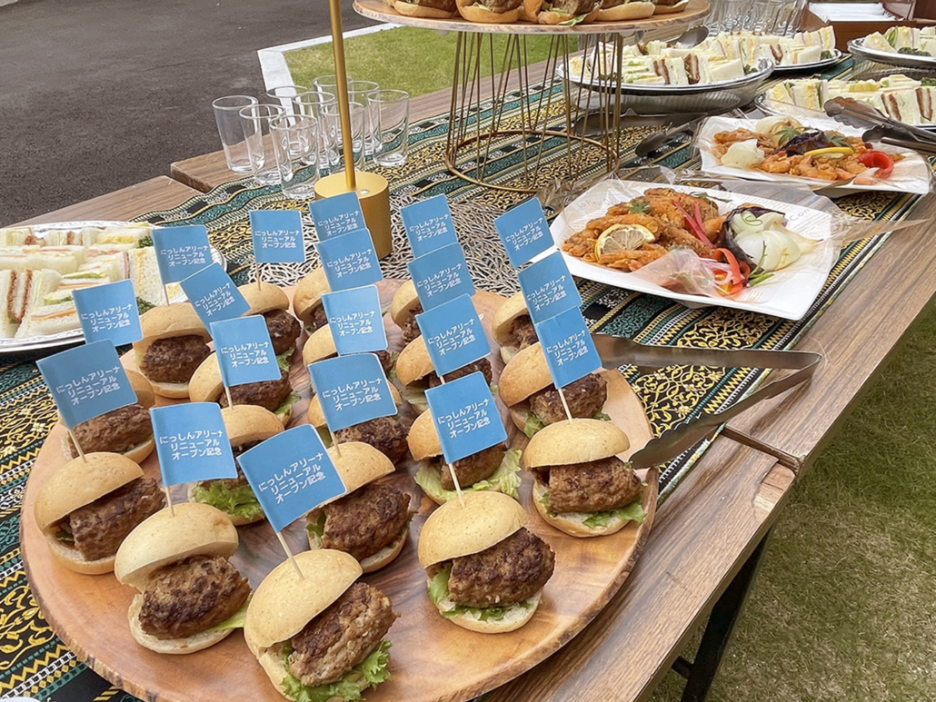 電気機械器具の製造・販売メーカーご担当者様からのご依頼により、体育館リニューアルに伴うお披露目会用のパーティー料理をお届けさせていただきました。