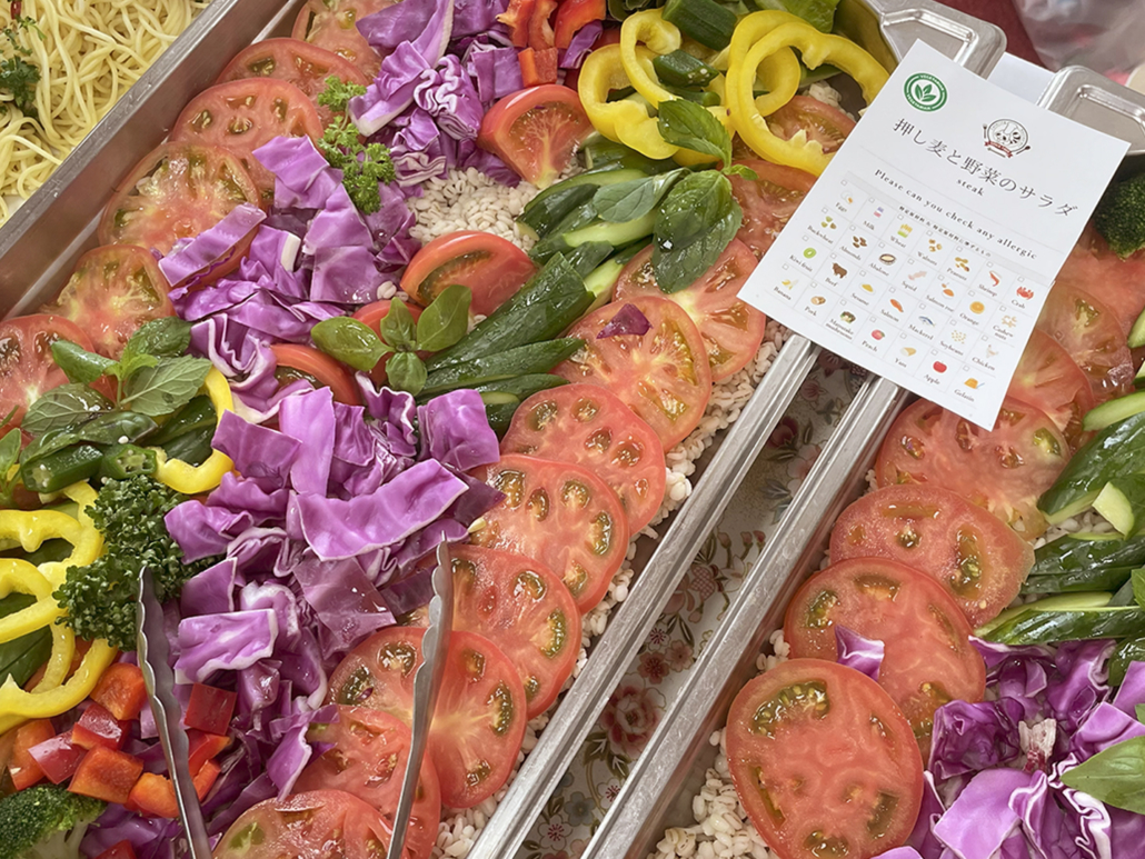 - ベジタリアン対応メニュー:せいろ蒸し野菜・ソイミートハンバーグ・生春巻き・他