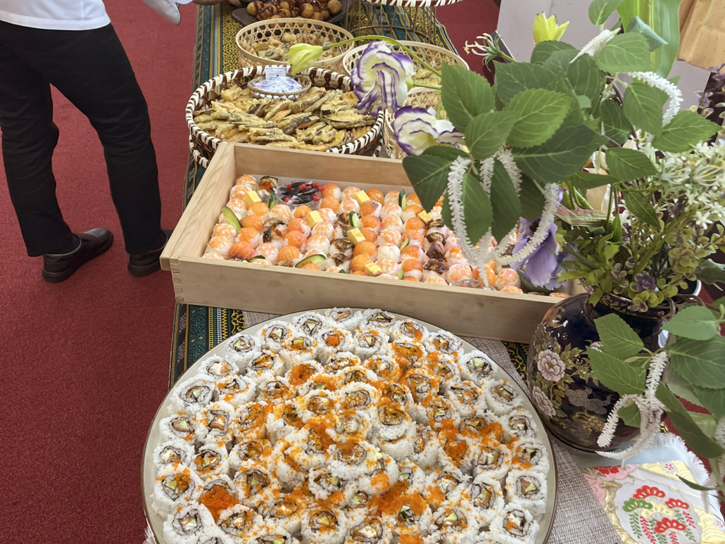 - 手毬寿司・天ぷら・だしまき・エビフライロール寿司・冷やしうどん・カレー・他
