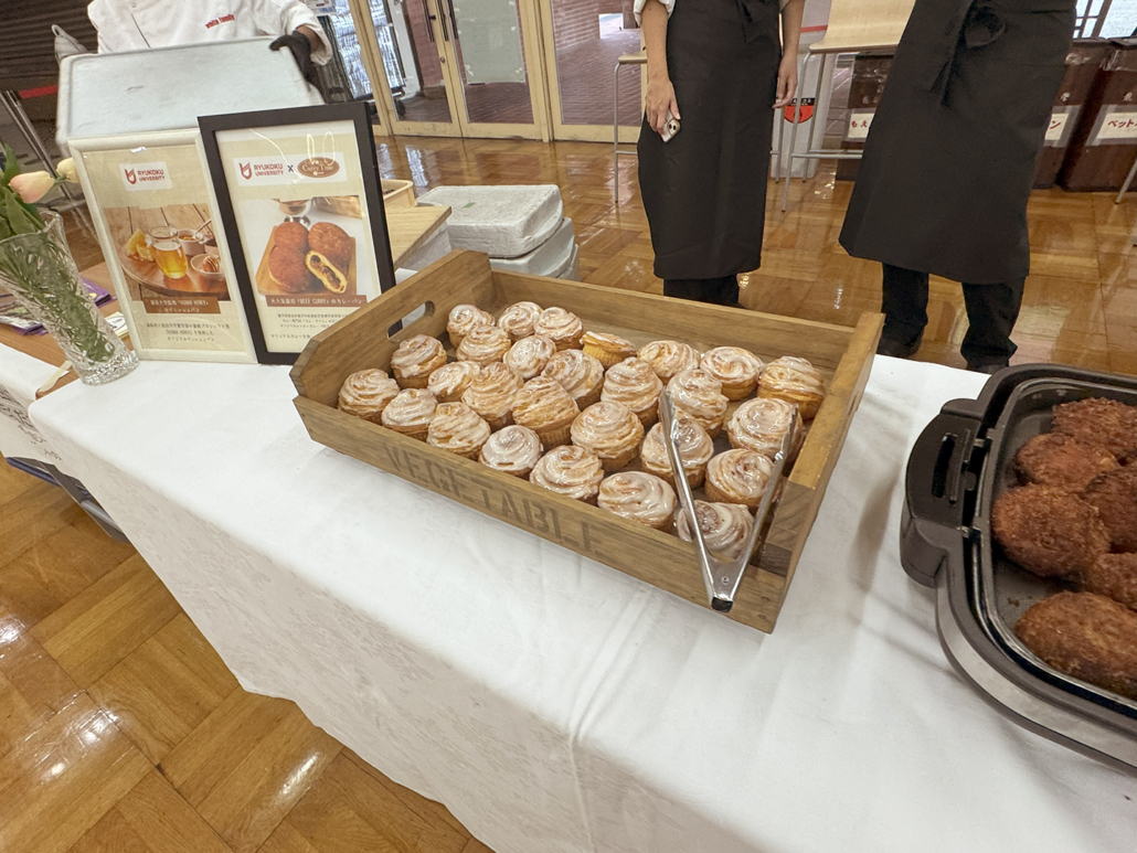 - スパニッシュオムレツ、肉団子、油淋鶏、龍大オリジナルのカレーを使用したカレーパン、はちみつデニッシュ、タピオカドリンク 他多数