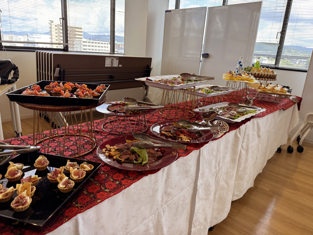 飲料メーカー様の内定式用パーティー料理をお届け 2025年10月1日/カテゴリ: これまでの事例集 /作成者: white-family飲料メーカー様のご依頼により、本社で開催されました内定式後の昼食会用のパーティー料理をお届けいたしました。 相談内容●社内で内定式を行う。約30名分のパーティー料理を届けて欲しい。 ●昼食会はビュッフェ形式で行う。 ●テーブルクロスを用意して欲しい。 配達エリア京都市南区 参加人数約30名 ご提案させて頂いたケータリングメニュー エビフライ、エビチリ、スパニッシュオムレツ、ステーキ、にぎり寿司、生ハムといちじくのタルト、サーモンのタルト、デザート 他多数 ご下命頂き、誠にありがとうございました。 ~心に寄り添い “想い”をカタチに~ https://www.wf9999.com/wp-content/uploads/blog-251001-01.jpg 1080 1440 white-family https://www.wf9999.com/wp-content/uploads/logo-1.png white-family2025-10-01 11:30:522025-11-06 19:46:01飲料メーカー様の内定式用パーティー料理をお届け